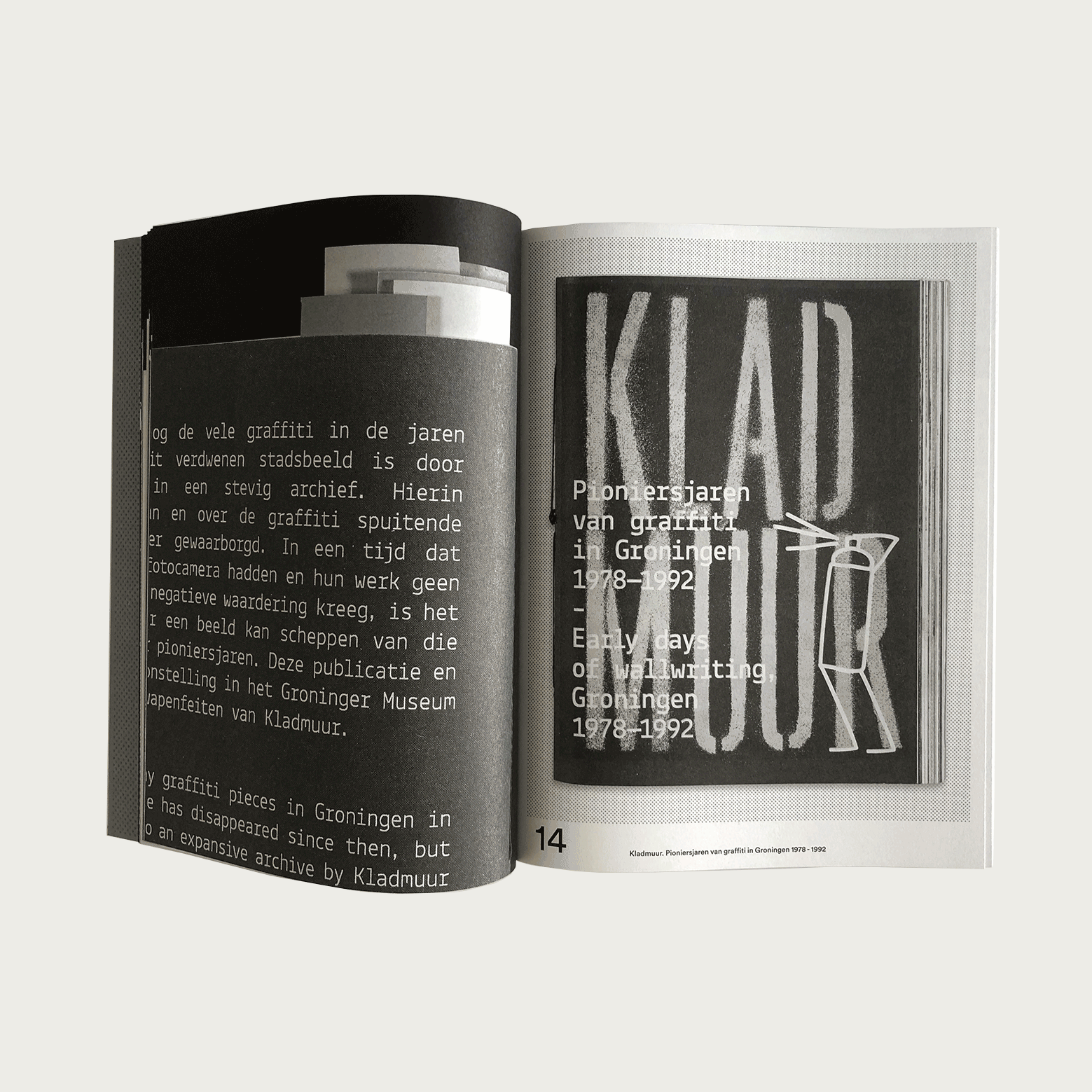 "De keuze voor risoprint past goed bij dit rauwe boek over de pioniersjaren van graffiti en street art in Groningen. Het DIY- gevoel van de inhoud klopt helemaal met de techniek en inherente imperfecties van Riso. Bovendien worden alle hoeken van Risoprint hier verkend; de afbeeldingen zijn afwisselend in zwart-wit, kleur en met fluor steunkleuren.